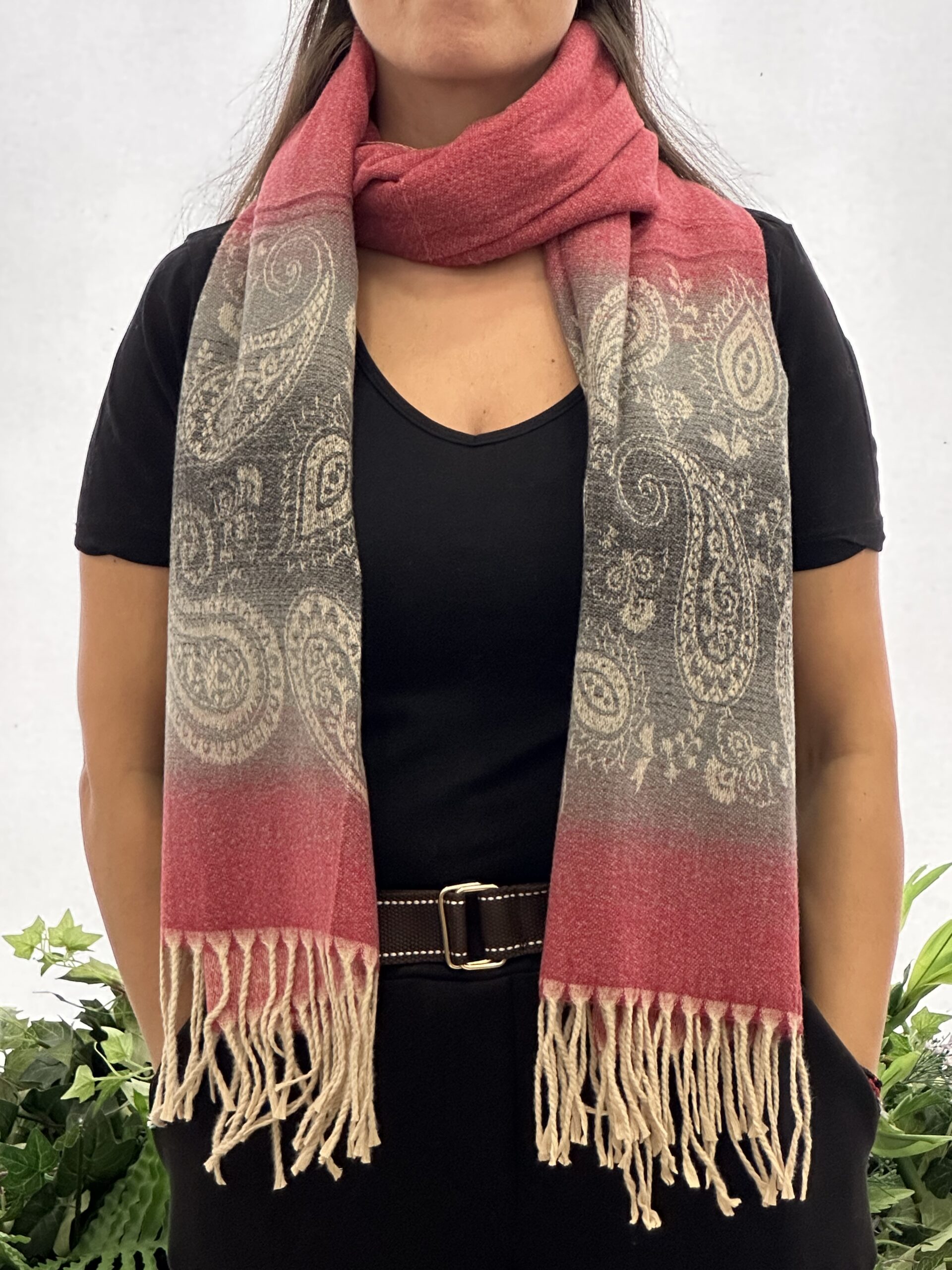 Γυναικεία εσάρπα μαλακής υφής σε βισκόζη με σχέδια λαχούρ και κρόσια στο τελέιωμα.