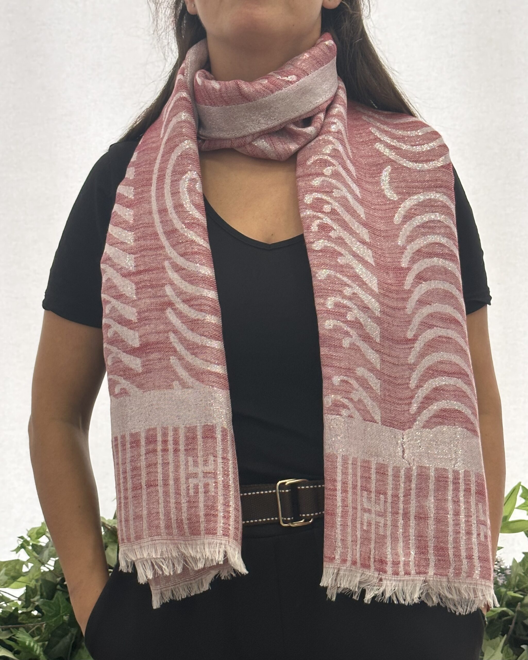 Γυναικεία Μονόχρωμη εσάρπα με μεταλλιζέ σχέδια και ξέφτια στο τελείωμα.