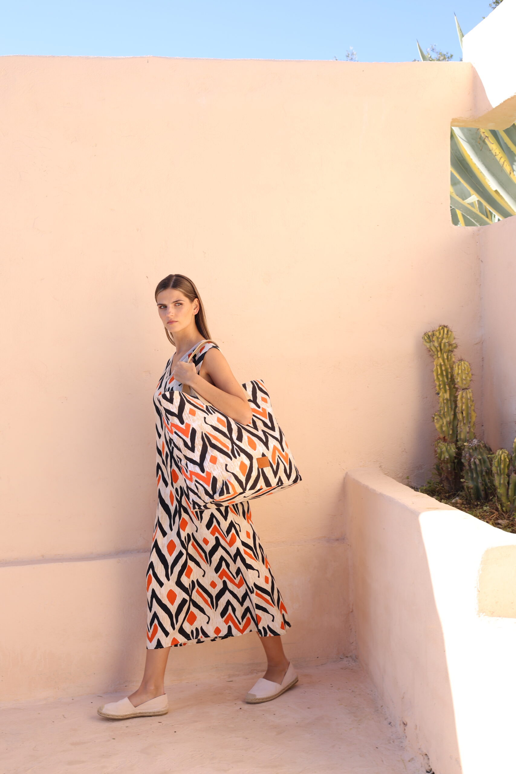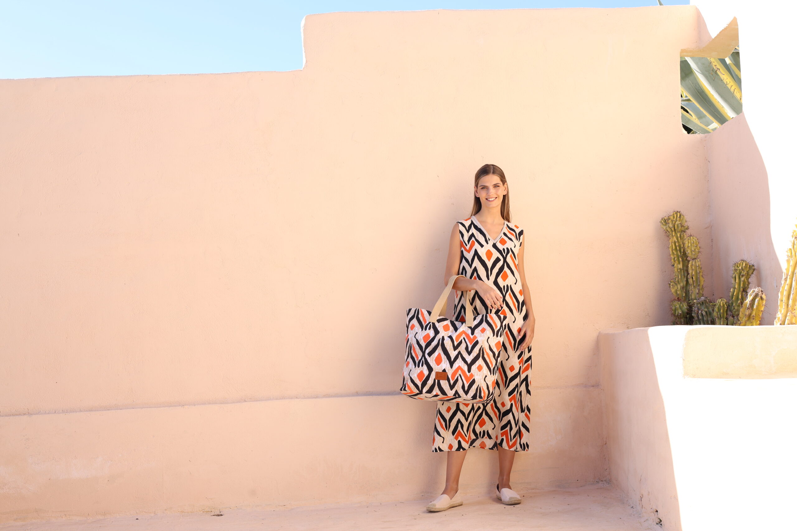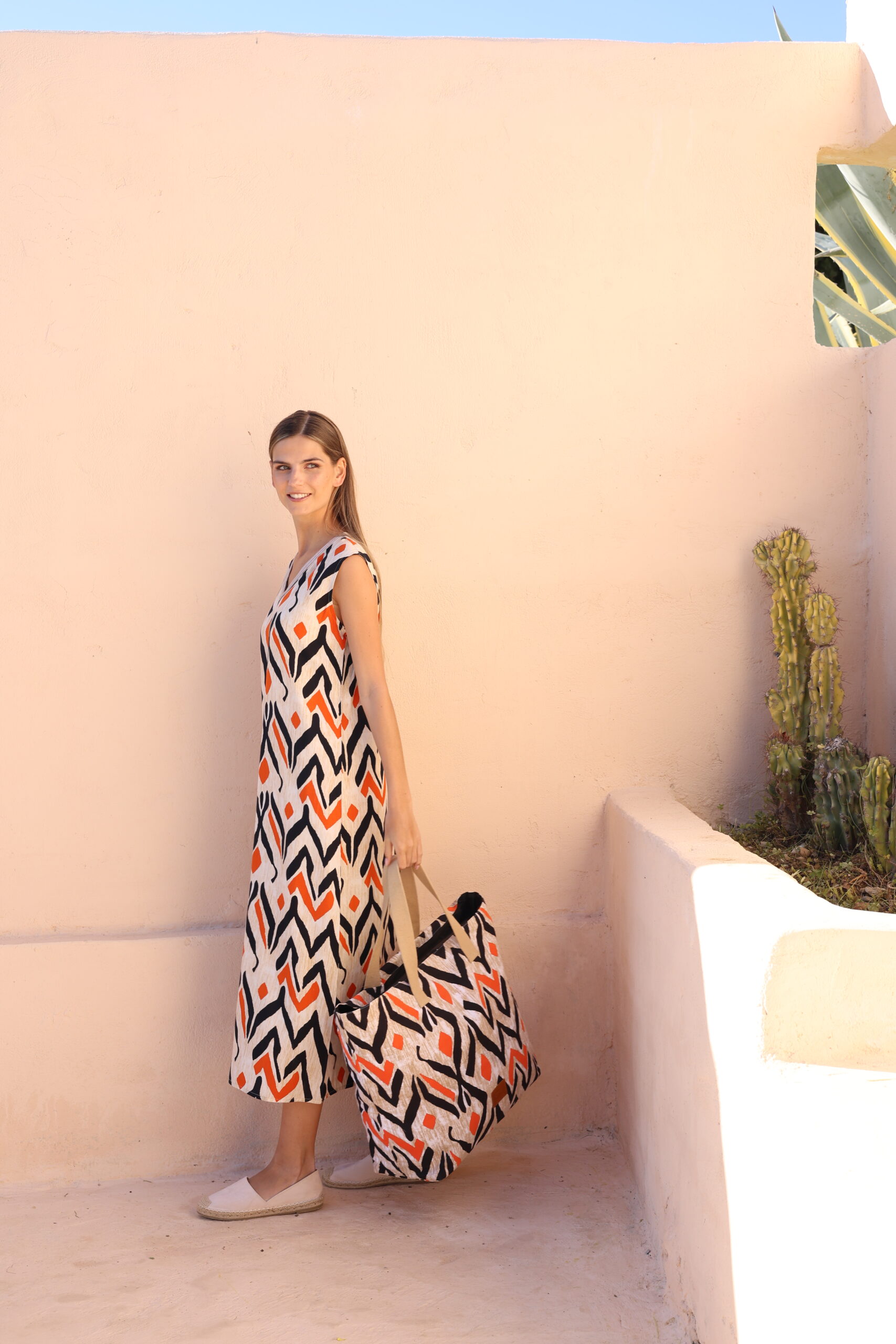Γυναικείο μακρύ καφτάνι αμάνικο με V στο στήθος και διακοσμητικό κέντημα.