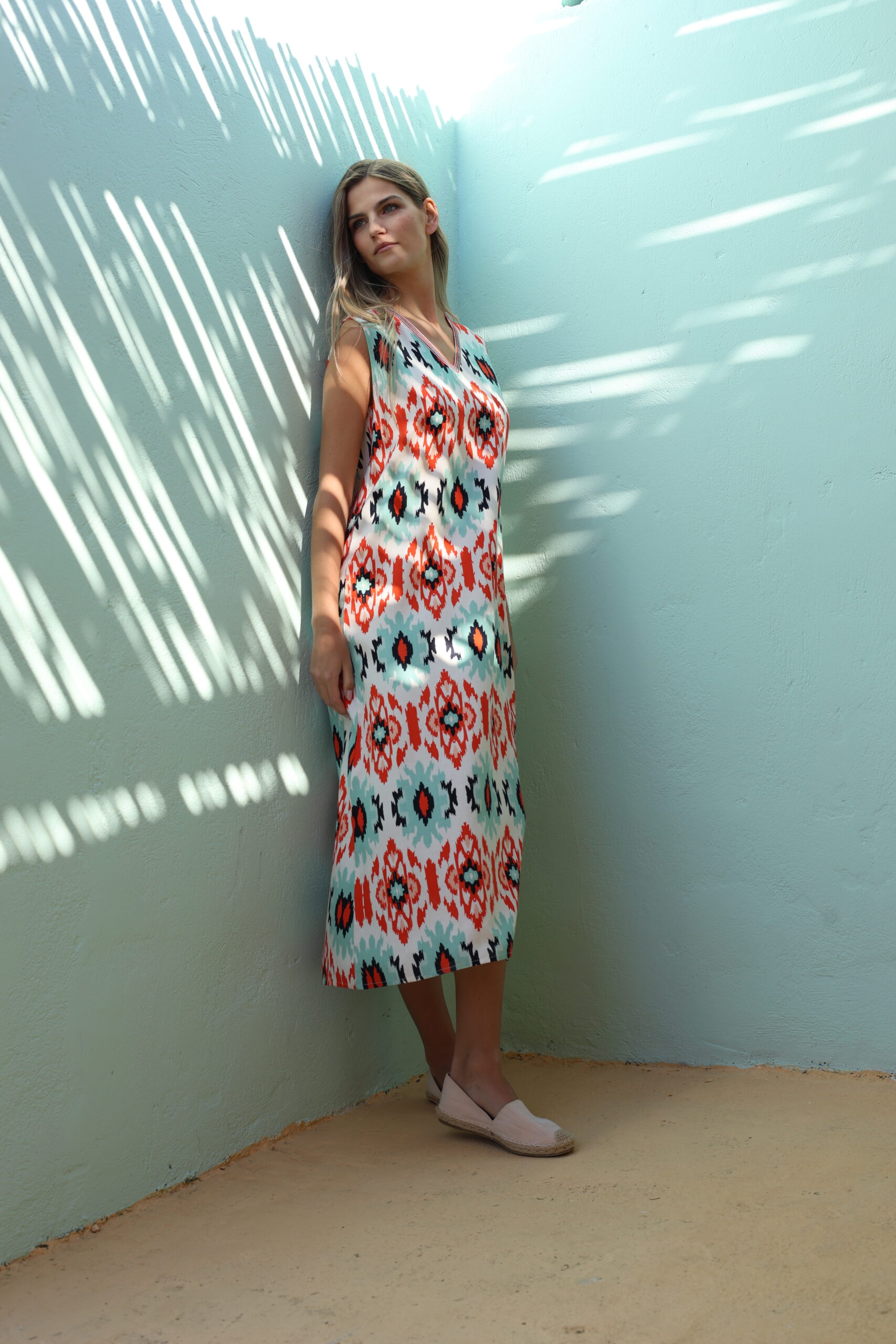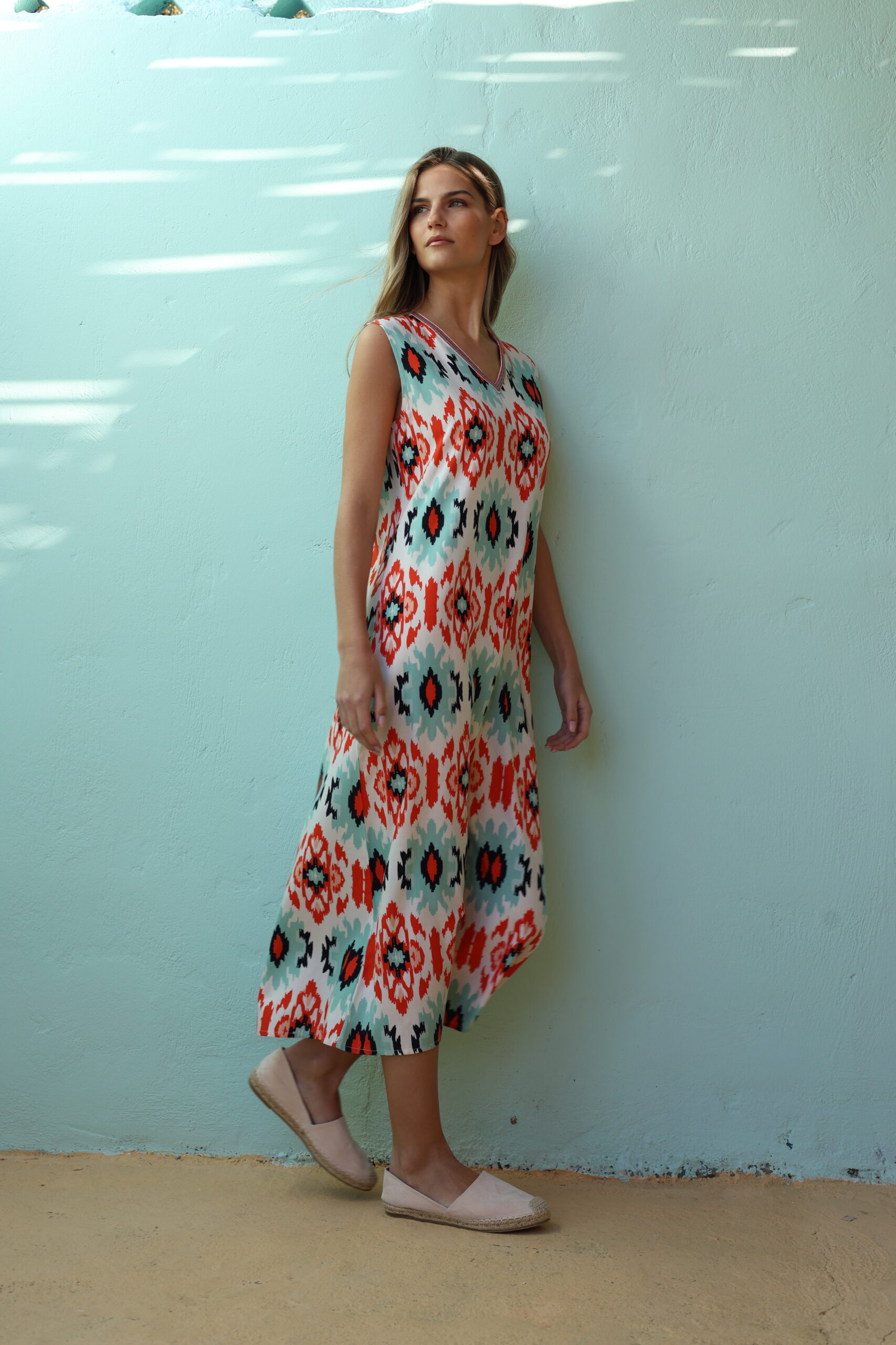 Γυναικείο μακρύ καφτάνι αμάνικο με V στο στήθος.