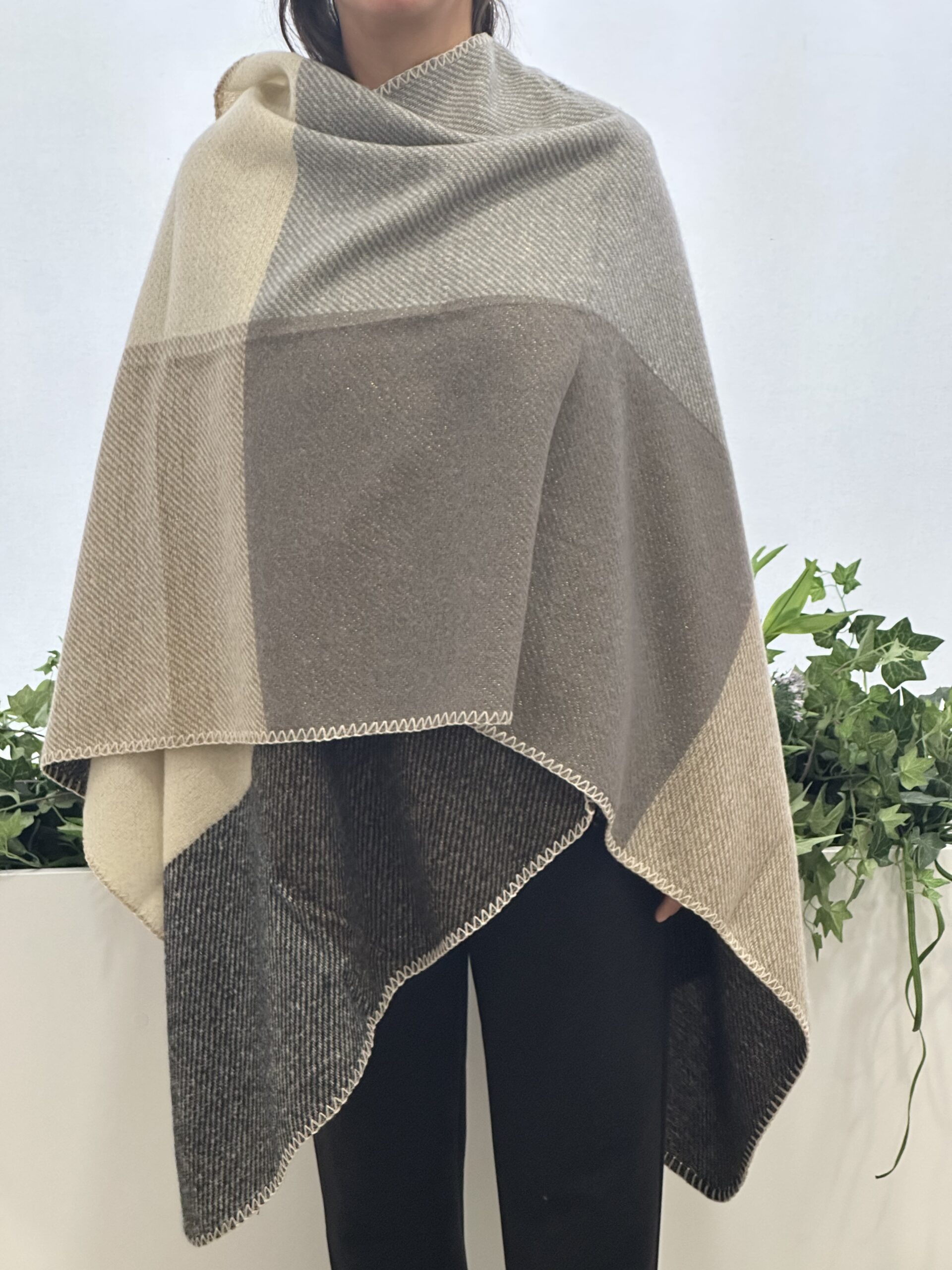 Πόντσο από απαλό και ζεστό υλικό. Με καρό σχέδιο σε διάφορες αποχρώσεις και ρέλι στο τελείωμα.