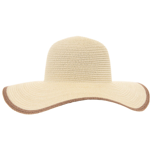 Γυναικείο ψάθινο καπέλο με μεταλλιζέ απόχρωση στο τελείωμα. Διακοσμημένο με ξύλινες μπίλιες για έξτρα glamour εμφανίσεις όλες τις ώρες.