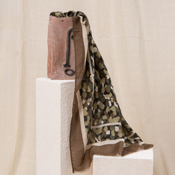 Εσάρπα με πολύχρωμα σχέδια και ρίγες στο τελείωμα. Μήκος 1,8, Πλάτος 87, Ύψος